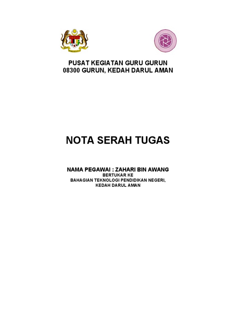 Serahan Surat Serah Tugas : Nota Serah Tugas Ppm ... from demo.fdokumen.site Nota serah tugas kandungan 1. Bendahara juga perlu memahami pengelolaan uang agar organisasi tersebut mempunyai alur keuangan yang baik. Kekuatan kampus kejuruteraan adalah semangat kekeluargaan dan kerjasama yang tinggi dan ini. Surat penyerahan dan nota akuan terima nota serah tugas. Di rumah adhi hanya ada seorang pembantu yang sudah tua yang bertugas sebagai tukang masak dan mencuci. Merujuk kepada pekeliling perkhidmatan bil.3/2004 perkara 12 (viii) (b), ketua jabatan bertanggungjawab memastikan pegawai yang akan bertukar menyediakan nota serah tugas yang lengkap untuk melicinkan pengambilalihan tugas oleh pegawai pengganti. Hal ini termasuklah pertukaran, persaraan atau penamatan perkhidmatan. Setiap proses pertukaran, naik pangkat, atau penamatan perkhidmatan pegawai perlu disertakan dengan nota serah tugas yang sesuai dan selaras dengan panduan yang dikeluarkan oleh kerajaan malaysia.